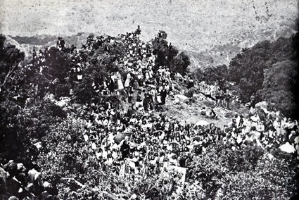 1901: La folla dei fedeli assiste alla inaugurazione della statua del Redentore