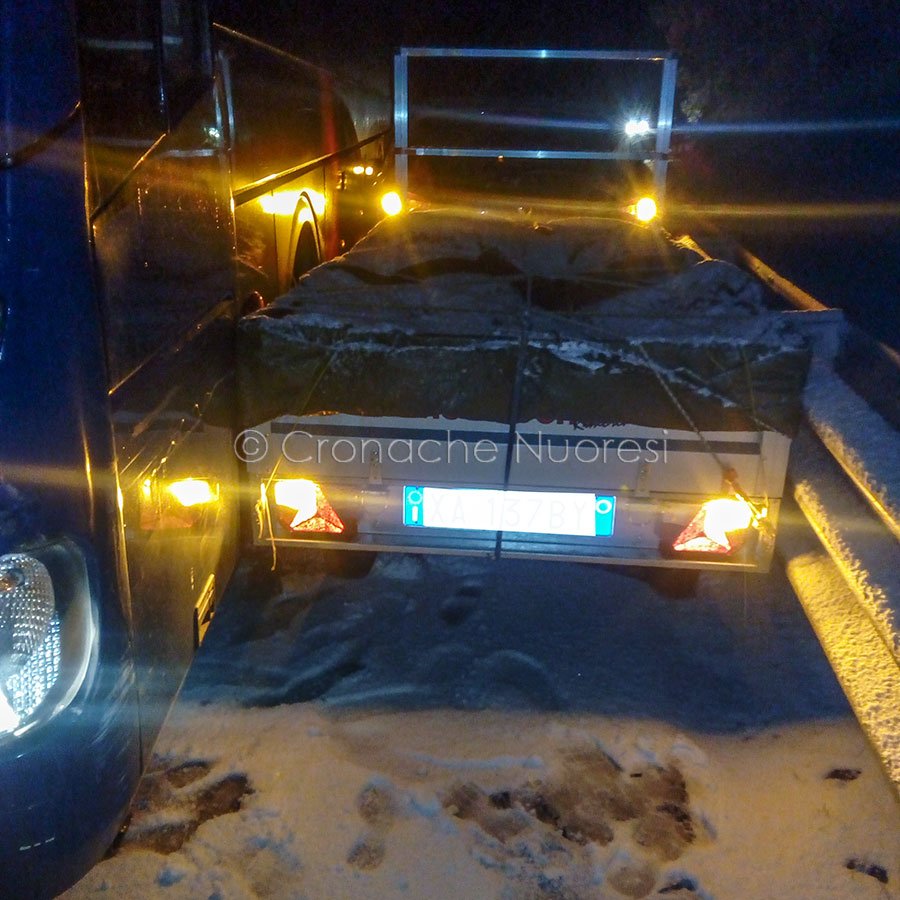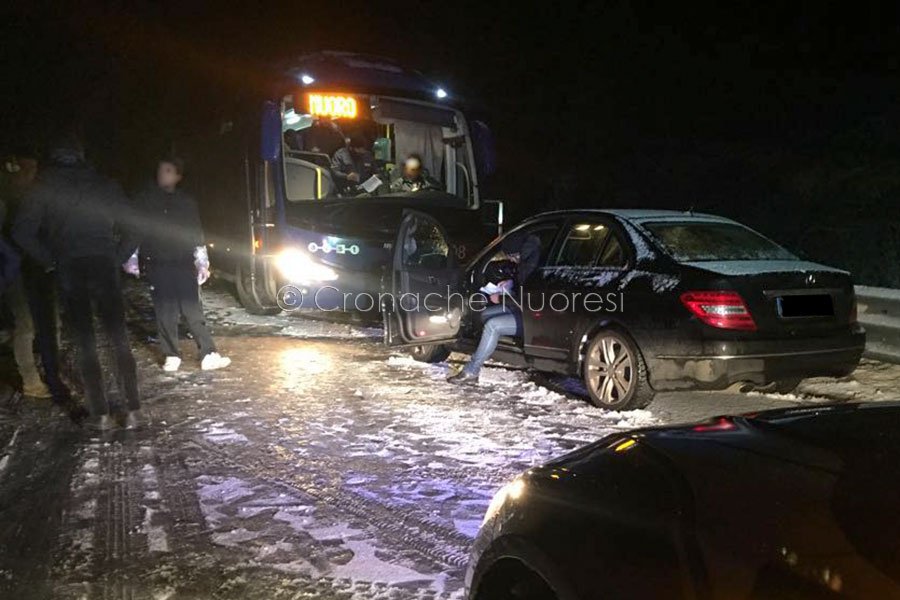 Sono momenti delicati, in cui si tenta di fare il meglio per evitare rischi. «Dall’auto appena arrivata è sceso un giovane – prosegue il protagonista dell’incidente. Un istante dopo, dalla direzione opposta rispetto alla mia, è sopraggiunto un pullman dell’ARST (proveniente da Tortolì e diretto a Nuoro) che ha iniziato a sbandare andando a sbattere contro la Mercedes. Dopo l’urto, l’autista dell’autobus ha tentato di spostare il pesante automezzo, ma il manto nevoso ha impedito la manovra, provocando uno sbandamento. Il pullman è finito nuovamente contro berlina tedesca, perdendo del tutto il controllo e schiacciando la mia Renault (e il carrellino) contro il guard rail».