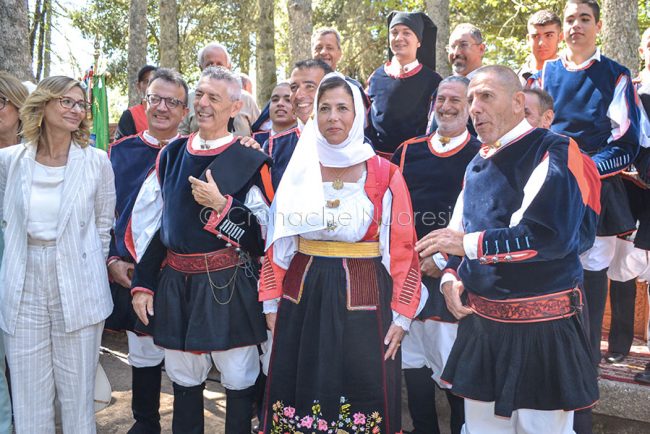 Alle undici, poi, si è svolta la cerimonia solenne, officiata dal vescovo monsignor Antonello Mura insieme al Capitolo della cattedrale e ai sacerdoti della città, e accompagnata dai cori Barbagia e Grazia Deledda, alla presenza delle autorità militari e civili, alla presenza della presidente della regione Alessandra Todde, che per l’occasione ha indossato l’abito tradizionale nuorese.