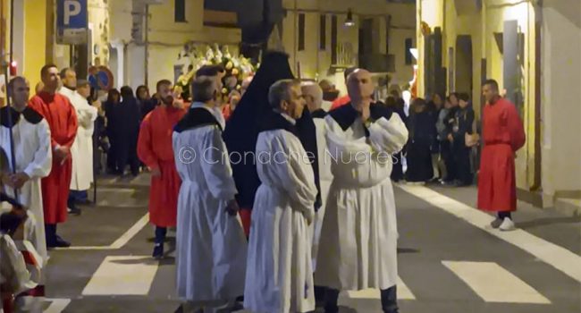 VENERDÌ SANTO: S’ISCRAVAMENTU E S’INTERRU, IL CULMINE DEL DOLORE – Il Venerdì Santo è il giorno del lutto per la morte di Cristo, segnato da due momenti rituali centrali: s’Icravamentu (la deposizione dalla croce) e s’Intzerru (il corteo funebre), entrambi curati dalla Confraternita di Santa Croce. Il priore invita ufficialmente le altre confraternite a partecipare, trasportando il Cristo Morto e la Madonna Addolorata. Anche s’Iscravamentu, come la processione dei Misteri, è stato recentemente ripristinato, e le sue fasi (la rimozione della corona di spine, l’estrazione dei chiodi) sono accompagnate da canti sacri come lo Stabat Mater, il Kirie e le Sette ispadas de dolore. Segue la processione de s’Interru de Zesu Gristu, guidata dal priore del Rosario. Il Cristo velato, deposto su una lettiga riccamente ornata (su brossolu), è portato in processione dai confratelli di Sas Ànimas, insieme agli strumenti della Passione. Al centro del corteo, i confratelli di Santa Rughe portano la grande croce scura (Sa Rughe Manna), mentre l’Addolorata è portata dai confratelli del Rosario. Una folla silenziosa e commossa chiude il corteo, recitando il Rosario e ascoltando i cantori intonare strofe del Miserere e sos gotzos de s’Interru ad ogni stazione. Al termine, i simulacri ritornano all’Oratorio di Santa Croce, dove un singolo cantore intona una toccante monodia sul dialogo tra Gesù e il peccatore.