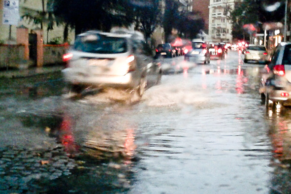 A causa delle forti precipitazioni le principali strade cittadine si sono allagate e si rischia di uscire fuori strada o rimanere bloccati.