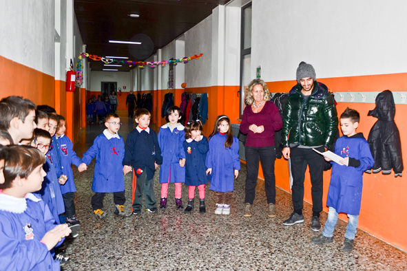 Un briciolo di emozione è emerso anche negli occhi del giocatore quando ha salutato la sua ex insegnante, maestra Maria Luisa.