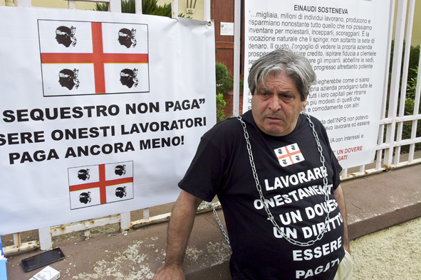 Disperato, dopo aver perso due udienze in Tribunale, Domenico Mele, nuorese, questa mattina si è incatenato per alcune ore all’ingresso della Direzione Generale dell’ASL, in via Demuratas a Nuoro.