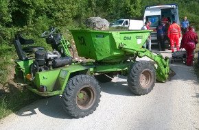 Il dumper dietro al quale si è protetto Giovanni Cabua