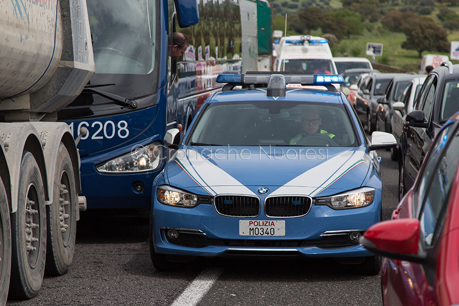 La Polizia stradale regola il traffico sulla 131 (foto S.Novellu)
