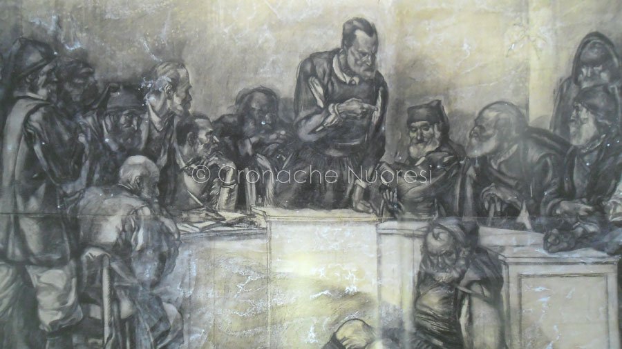 Nel 1924, l’Amministrazione Comunale di Nuoro bandì un concorso per la decorazione artistica della Sala consiliare del vecchio Municipio situato nel Corso Garibaldi, che secondo le indicazioni degli amministratori avrebbe dovuto contenere una grande tela con un dipinto celebrativo riguardante un’episodio di storia nuorese.