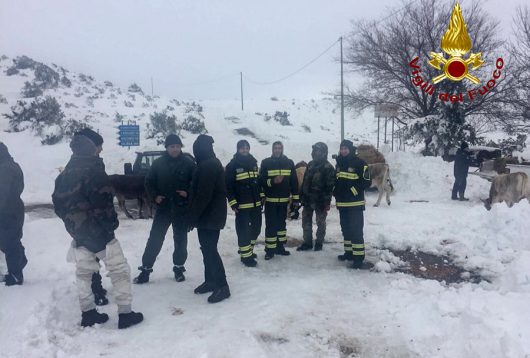 Le avverse condizioni meteo hanno impedito il loro raggiungimento dall’alto con l’elicottero e gli uomini del 115 hanno percorso il sentiero di avvicinamento da terra lungo quasi 4 Km di percorso innevato.