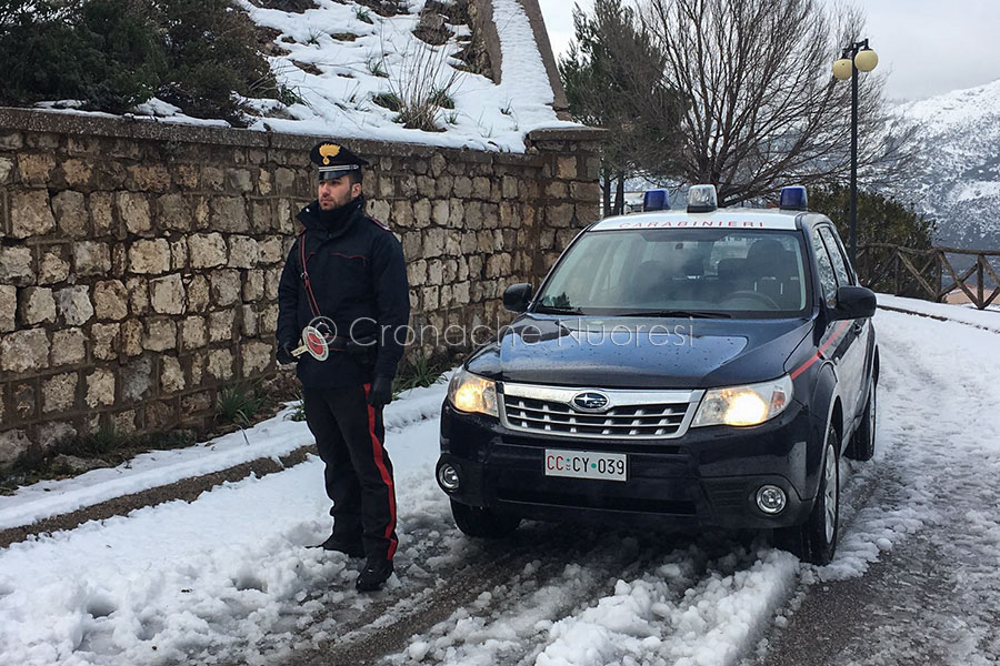 OTTANA: da domenica fino a ieri, la Compagnia dei Carabinieri di Ottana, guidata dal Capitano Massimo Meloni per garantire la sicurezza dei cittadini lungo le strade di pertinenza ha impiegato sul territorio 96 pattuglie. Nei comuni a bassa quota di Ottana, Dualchi, Noragugume, Bolotana, Orotelli, Oniferi non si sono verificate grosse criticità. Le maggiori difficoltà si sono registrate invece nei centri montani soprattutto di Gavoi e Ollolai per il raggiungimento delle campagne e sulla “bretella di Monte gonare” di Orani, in cui la coltre nevosa caduta ha raggiunto livelli notevoli. I principali interventi hanno riguardato alcuni mezzi pesanti rimasti bloccati lungo la SS 128 nei pressi del lago taloro, ma la situazione si è risolta in tempi brevi facendo intervenire i mezzi spargisale.