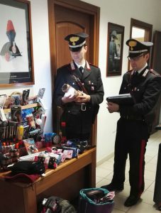 I Carabinieri mentre catalogano la merce sequestrata