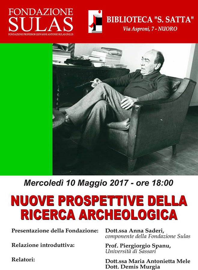 La fondazione “Giovanni Antonio Sulas Onlus” organizza mercoledì 10 maggio alle ore 18 , alla biblioteca S.Satta di Nuoro , una conferenza sulle “Nuove prospettive della ricerca archeologica”.