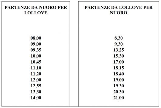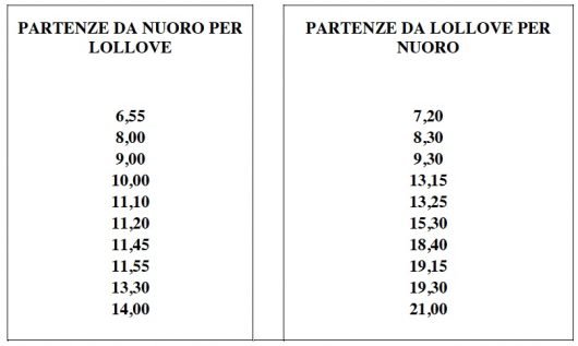 L’ATP di Nuoro informa che nei giorni 13 e 14 ottobre sarà potenziato il servizio di trasporto pubblico per la frazione di Lollove.