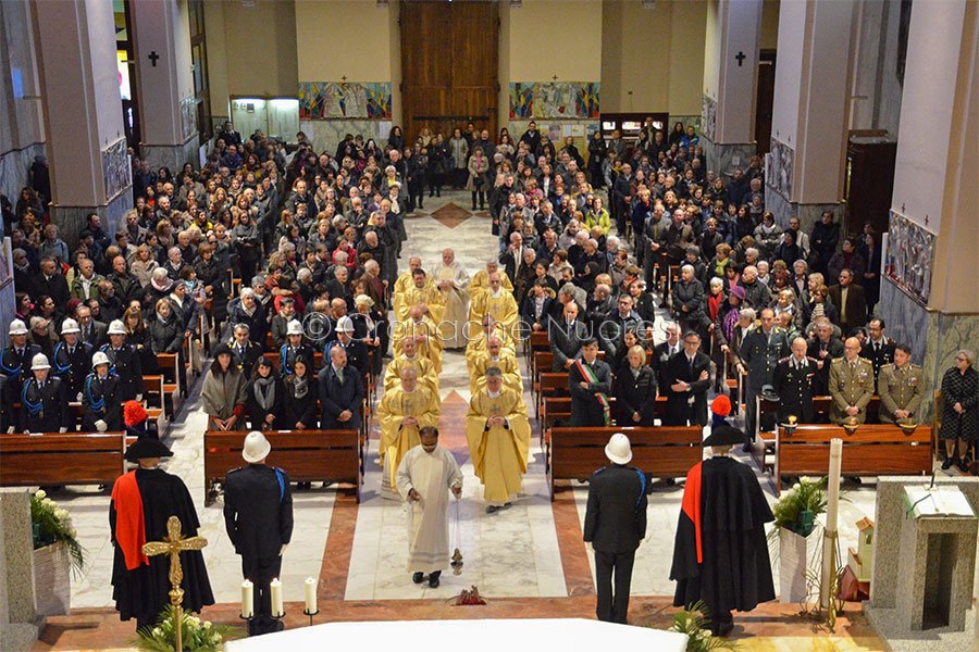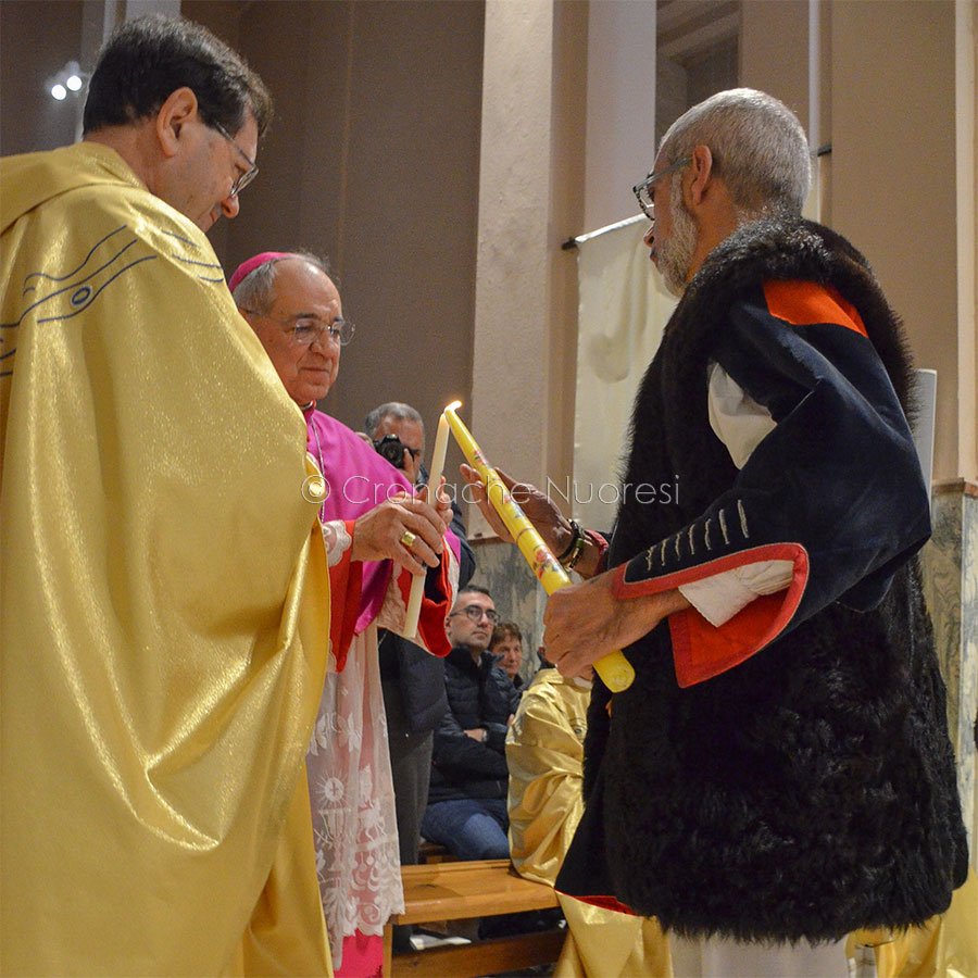 La cerimonia, che ha avuto il culmine con la consegna dei ceri votivi in rappresentanza dei rioni della città da parte di cittadini nuoresi in costume tradizionale, con in testa il sindaco Andrea Soddu nelle mani del vescovo di Nuoro, ha avuto inizio alle ore 11 con l’ingresso dei componenti del Capitolo della cattedrale nel santuario di N. S. delle Grazie per la celebrazione della santa messa. Il sacro rito, presieduto dal presidente del Capitolo don Giovannino Puggioni, in sostituzione del vescovo, impedito per motivi di salute, si è tenuto alla presenza di numerosissimi fedeli e della massime autorità cittadine civili e militari.
