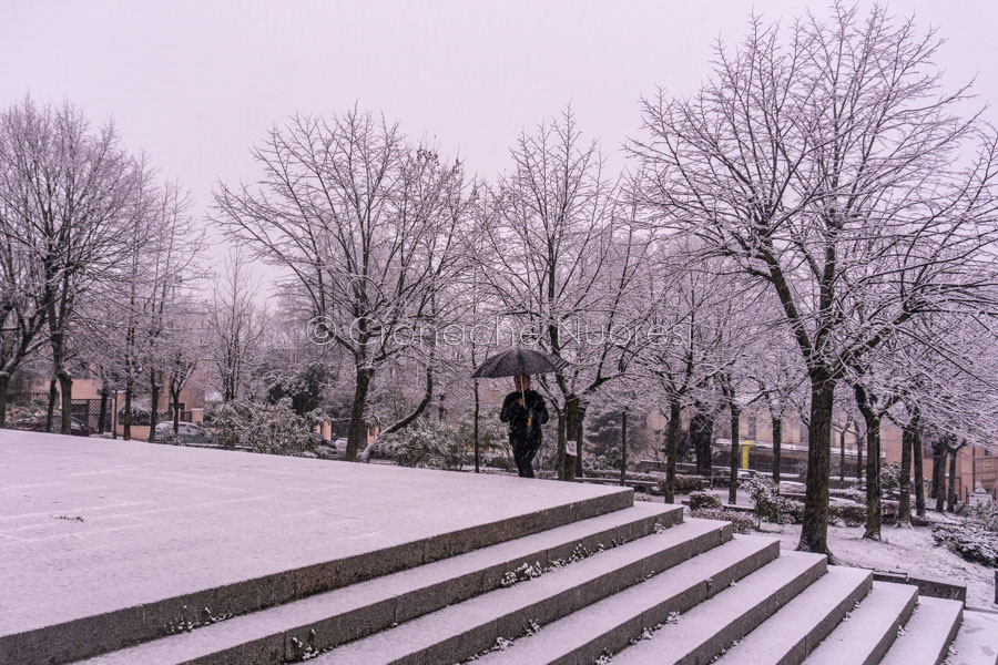 Nonostante l’allerta meteo prevedesse forti nevicate sin dalla serata di ieri, la neve ha fatto la sua timida comparsa solo intorno a mezzanotte, dipingendo di bianco il capoluogo barbaricino ormai dormiente. Oggi all’alba, nell’aprire le finestre tutti si aspettavano di trovare la sorpresa ma invece la neve non era ancora arrivata. “Per fortuna” avranno detto in tanti, affrettandosi ad andare al lavoro, “che delusione” avranno almeno pensato gli altri, soprattutto i più piccoli, oggi a casa per l’ordinanza del Sindaco di chiusura di tutte le scuole di ogni ordine e grado. Verso le 7,00, invece, ha iniziato a fioccare, abbondantemente, ricoprendo ogni cosa con una leggera coltre nevosa.