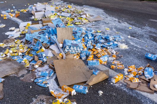 Guerra del latte. Brik di latte confezionato distrutti dai pastori sulla 131 DCN (foto S.Novellu)