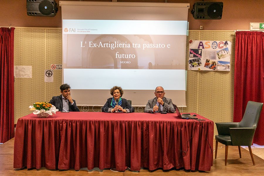 Nel pomeriggio, in un convegno organizzato dal FAI di Nuoro all’Istituto ITC Chironi, con la partecipazione di Carla Pacchiano (delegata FAI), il sindaco Andrea Soddu e l’ingegnere Francesco Licheri (responsabile del team di professionisti del restauro degli spazi dell’ex Artiglieria – inserita nel più ampio contesto del bando delle Periferie, per il quale ci sono circa 38 milioni di euro per Nuoro), davanti al un folto pubblico, sono state chiarite tutte le fasi della progettazione.