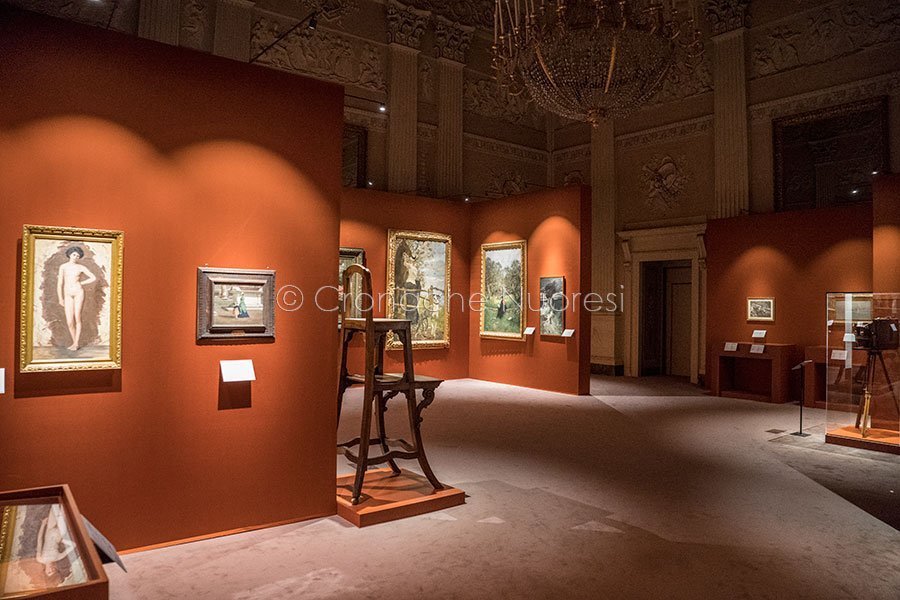 Opere d’arte, fotografie ed oggetti illustrano le diverse forme di operosità dell’universo muliebre, descrivendo energie e risorse spesso non riconosciute. Le contadine ad esempio, dedite alle pratiche agricole collegate al ciclo delle stagioni dovevano anche occuparsi degli animali nella fattoria. E nei momenti di sosta dal lavoro più duro, rammendavano, lavoravano a maglia o intrecciavano la paglia, come si può vedere in numerosi dipinti di Silvestro Lega esposti in galleria.