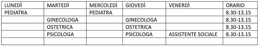 Da segnalare, inoltre, che – con l’assistente sociale del Consultorio Familiare – sempre il venerdì