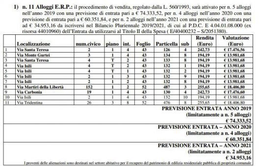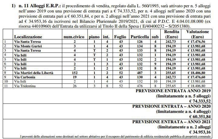 Gli appartamenti sono per lo più più ubicati nel quartiere di Monte Gurtei e gli altri tra via Tridentina e via Martiri della Libertà nel quartiere del Nuraghe per un totale di previsione di entrata nel triennio 2019/2021 stimato in 170 mila 638 euro e 52 centesimi.