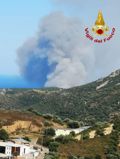 Dalle 17.00 di oggi un vasto incendio sta interessando un’ importante area boschiva del comune di Bari Sardo.