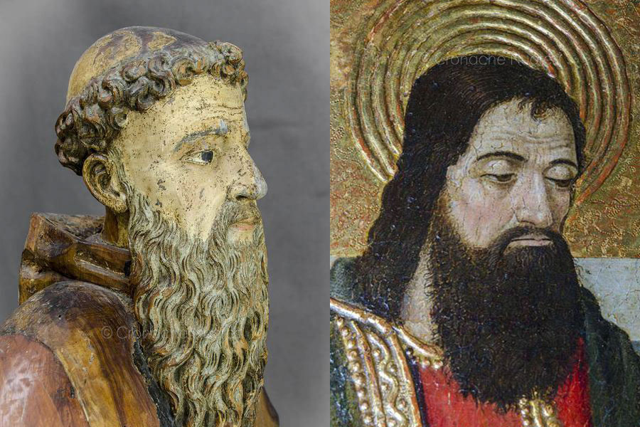 Indagando, si è così scoperto che la bottega artistica del Maestro produceva anche statue in legno, come quella di Sant’Antonio Abate – cui peraltro è intitolata la cattedrale castellanese – che dal Settecento si trovava in sacrestia, separata dal resto di quel retablo di cui ormai non resta che un quinto. La statua era in realtà al centro della composizione che per più di un secolo, tra la fine del Quattrocento e la fine del Cinquecento, stava al centro dell’altare, finché non venne smontato in epoca post conciliare per volontà del francescano Juan Sanna Porcu.
