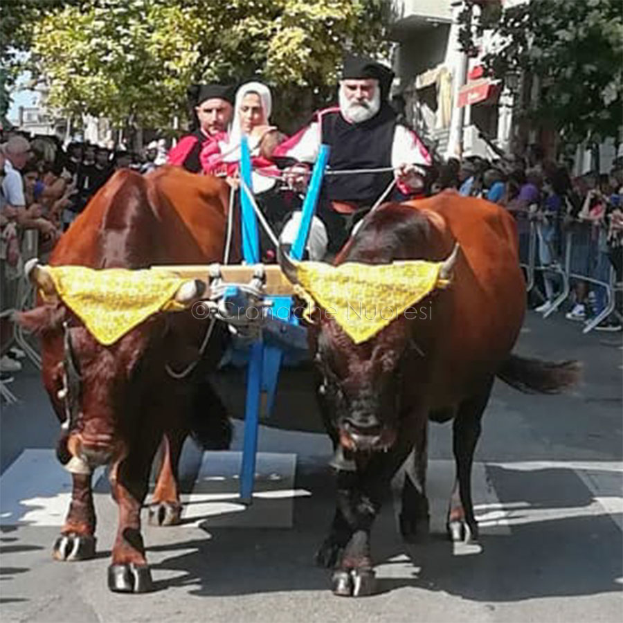 Orgoglio e fede muovono le migliaia di costumi, l’incedere del carro a buoi detta il passo e richiama tutti alla lentezza delle solenni occasioni. Dalla tribuna assistono il Sindaco e gli amministratori, locali e regionali.