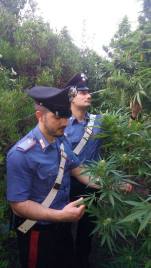 Appostati tra le piante di Marijuana di oltre 3 metri, i Carabinieri hanno effettuato un lungo periodo di osservazione riuscendo a beccare i coltivatori della piantagione.