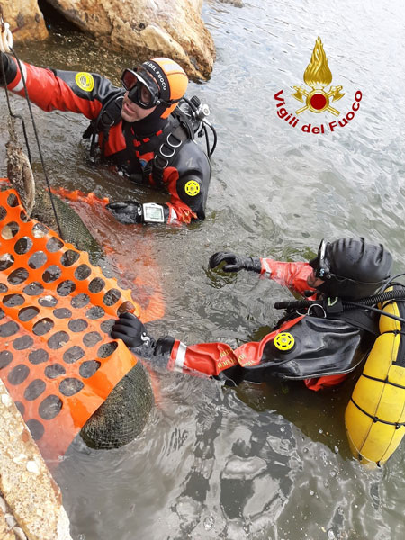 Sul posto sono intervenuti la Capitaneria di porto, Nucleo Sommozzatori VVF Nucleo Nautico, La 9A partenza terrestre di porto Torres e il Centro recupero animali marini Asinara.