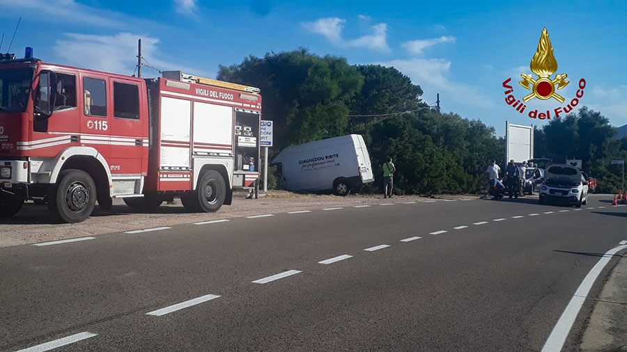 Dopo aver tamponato un’autovettura in procinto di svoltare, un furgone è uscito fuori strada nei pressi dell’incrocio per Cugnana verde (Olbia), sulla Provinciale 73.