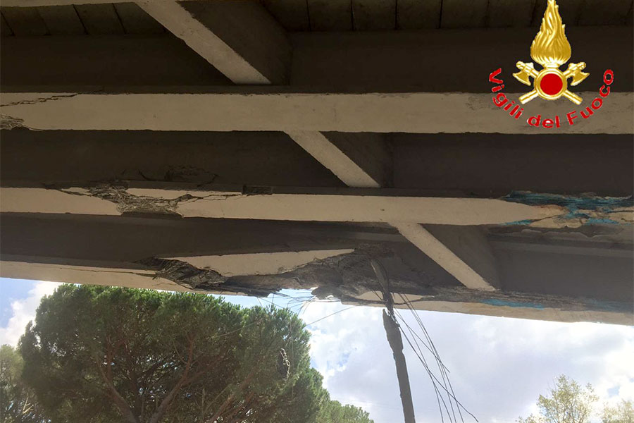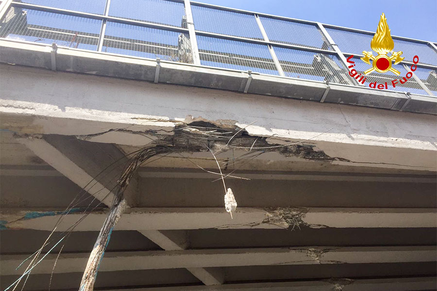 Il crollo è stato causato dal passaggio di un camion, che percorrendo il cavalcavia nella parte sottostante, ha urtato le travature tranciando alcuni elementi d’acciaio dell’armatura portante.