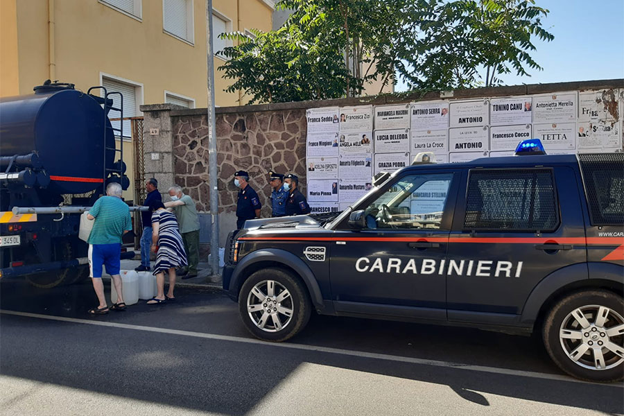 Carabinieri. Sono numerosi i rifornimenti effettuati a istituzioni pubbliche, case di riposo e cittadini privati che hanno potuto usufruire del rifornimento di acqua che i militari del 9^ Battaglione Carabinieri Sardegna unitamente a quelli del Comando Provinciale di Nuoro hanno attuato dalle cisterne di Farcana alla città.