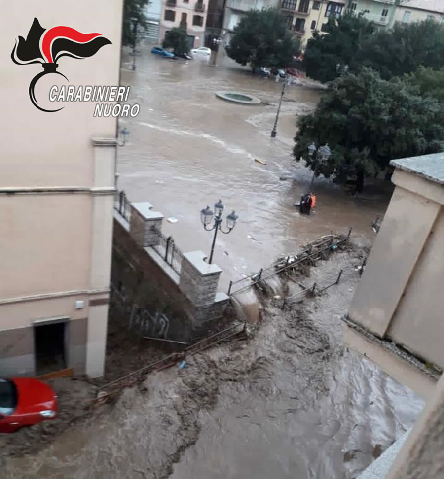 A seguito di una richiesta di aiuto, la centrale operativa ha inviato una pattuglia di militari in piazza Asproni, improvvisamente sommersa e inondata da detriti, fango e macchine trasportate dalla forza delle acqua. Giunti sul posto, il maresciallo ordinario Andrea Torracca e il carabiniere Enrico Cabitza, hanno localizzato un 70enne, aggrappato ad una struttura in ferro che, sorpreso dall’aumento improvviso del livello dell’acqua, cercava di resistere al flusso di materiali che scorrevano verso valle e, a piedi e con la forza delle loro braccia, sono riusciti  a raggiungere il malcapitato e ha metterlo in salvo in un luogo sicuro.