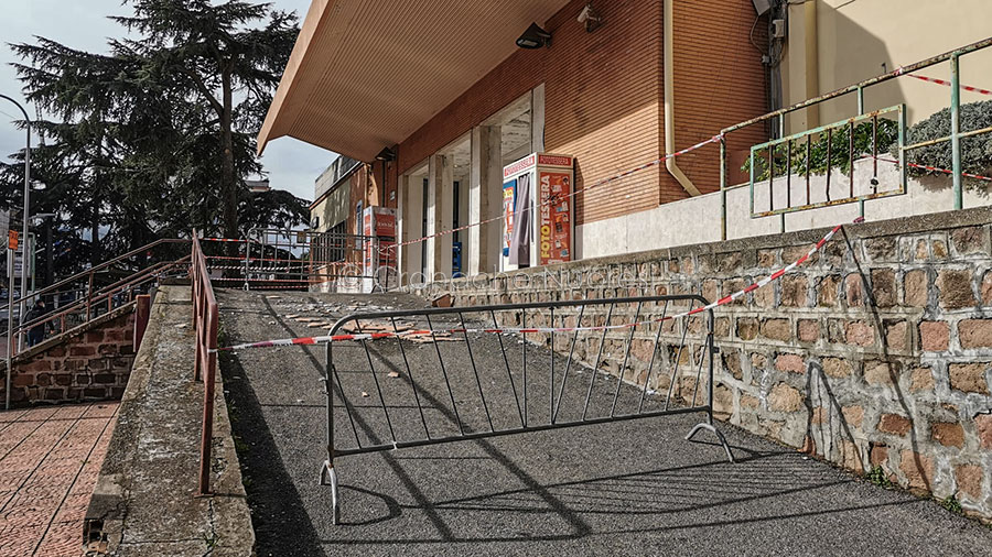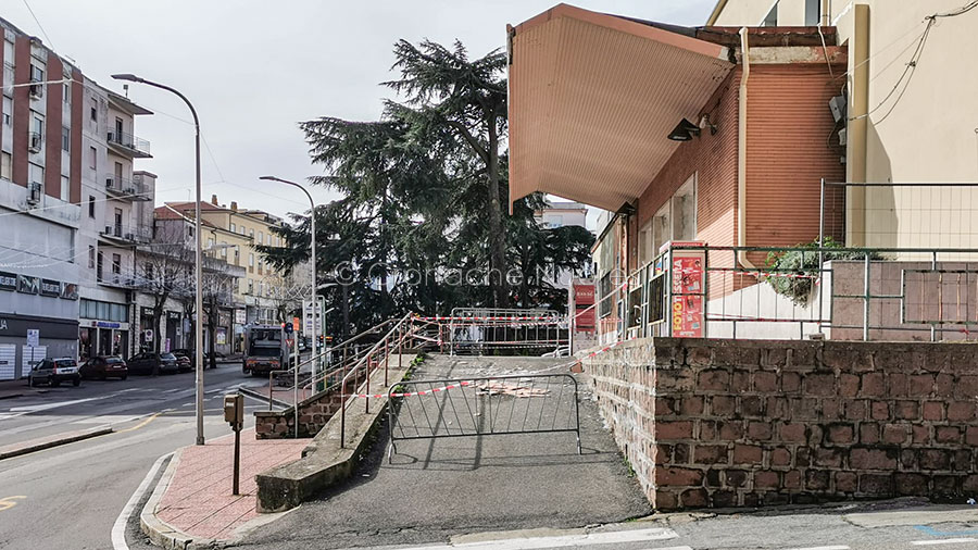 Un’ampia porzione di calcinacci si è staccata dalla tettoia antistante la Stazione ferroviaria ARST di via Lamarmora a Nuoro precipitando al suolo.