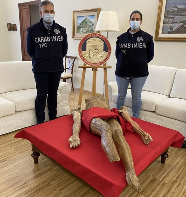 Un Cristo ligneo del 15° secolo, rubato nella Chiesa del Santissimo Crocifisso di Galtellì alla fine degli anni Ottanta, è stato restituito oggi alla Diocesi dal comandante del Nucleo Carabinieri per la Tutela del Patrimonio Culturale di Cagliari, Paolo Montorsi, alla presenza del Vescovo di Nuoro Antonio Mura.