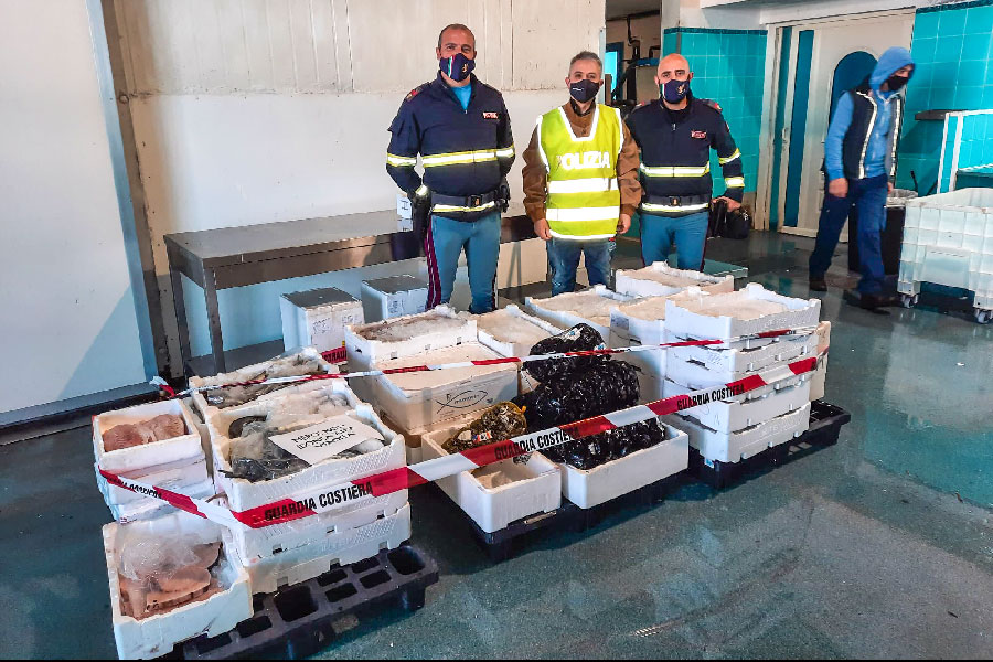 L’autista sarà sanzionato ai sensi della normativa vigente e della L.154/2016, nonché per la violazione della zona rossa, non avendo titolo per circolare. Il pesce confiscato, compatibilmente con condizioni conservazione, sarà dato in beneficenza alla Caritas ed alla “Onlus Arobaleno”.