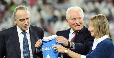 Giancarlo Abete e Giampiero Boniperti con la figlia di Silvio Piola nel 2013