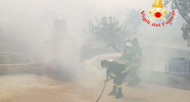 Il dispiegamento di forze in campo che vede impegnate tutte le risorse della macchina antincendio per arginare le fiamme che si propagano velocemente nel territorio riarso dalle alte temperature registrate.