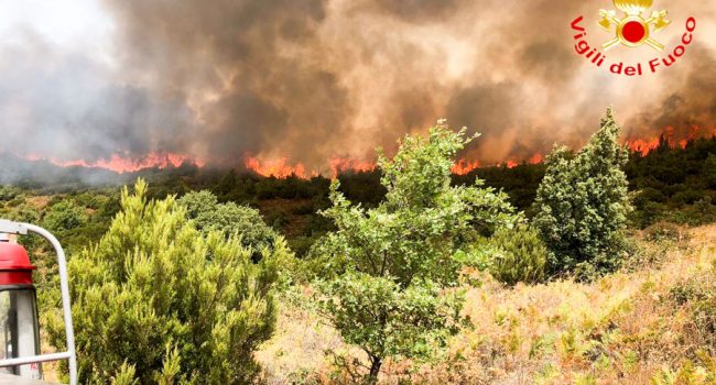 Il centro Sardegna continua a bruciare. Circa un’ora fa un maxi incendio si è sviluppato in Ogliastra a Villagrande in località Funtana Pipinari.