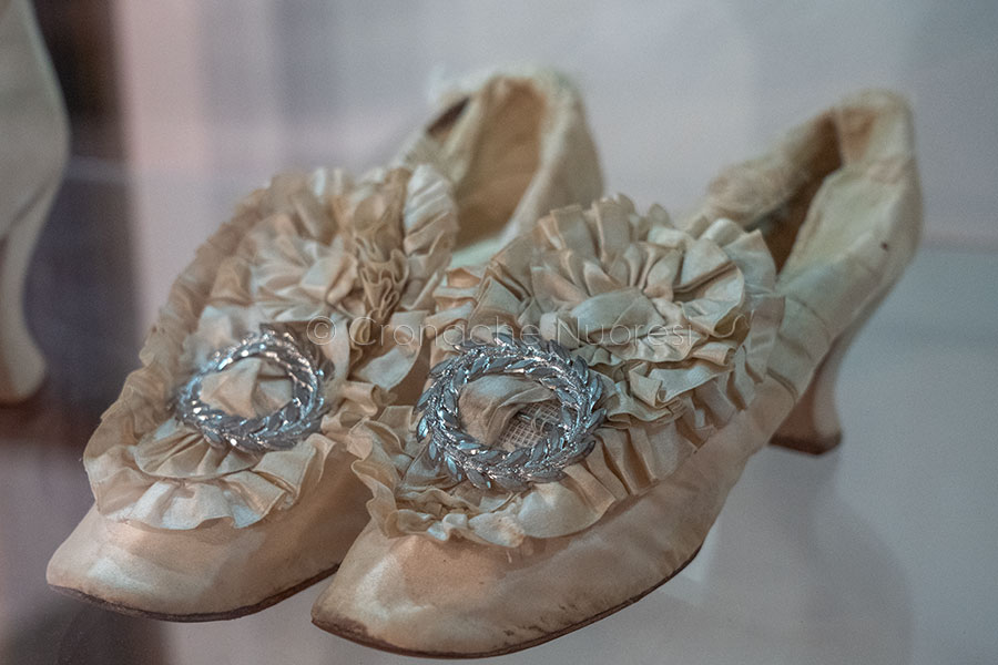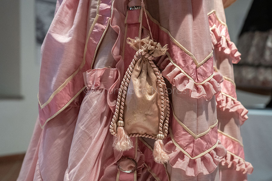 Non solo abiti: in mostra sono esposti anche accessori quali ombrellini parasole, calzature, copricapi femminili di varie fogge e materiali, borsette, oltre ad alcune bombette maschili, colletti, panciotti e altre curiosità.