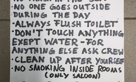 Durante la perquisizione dell’imbarcazione gli uomini della mobile hanno rinvenuto un foglio, appeso in diverse parti della barca, nel quale si davano precise istruzioni ai clandestini, per “facilitare” la convivenza a bordo durante le lunghe traversate sino alla Sardegna o alla Sicilia. Ai migranti veniva dato ordine in inglese, di: “non parlare mai con il Capitano”; “non entrare nella stanza del Capitano e nel bagno dell’equipaggio”; “non fare nessuna foto”; “non gettare in mare la spazzatura”; “non salire mai in coperta durante le ore del giorno”; “non prendere cibo se non autorizzati ma solo acqua”; “pulire ciò che viene sporcato”; “non fumare nelle cabine”. Le istruzioni terminavano con un quasi ironico “benvenuti a bordo”. All’operazione di sabato scorso ha partecipato anche personale della DIGOS e del Commissariato P.S. di Iglesias.