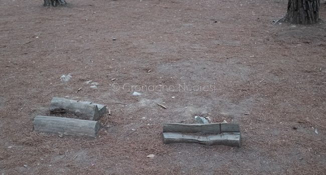 Il basamento di una delle panche scomparse dalla pineta di Ugolio (foto S.Novellu)
