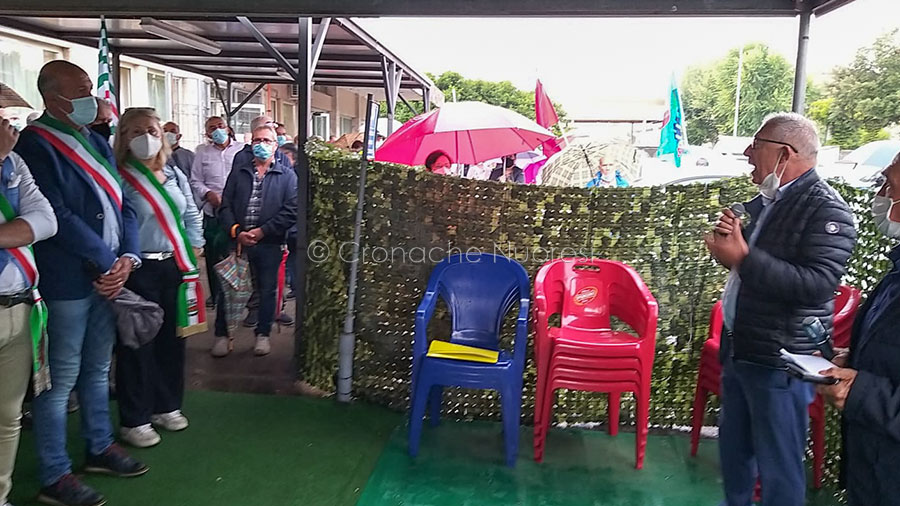 La manifestazione è cominciata, nonostante la pioggia, sotto i tendoni dell’ex motel. Poi il corteo si è diretto , a piedi, verso il Poliambulatorio, dove una delegazione è stata ricevuta dalla responsabile del Distretto Sanitario.