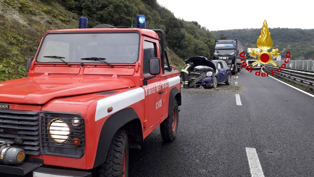 Due autovetture e un mezzo pesante sono stati coinvolti in un incidente stradale, questa mattina, al km 111 della Statale 131.