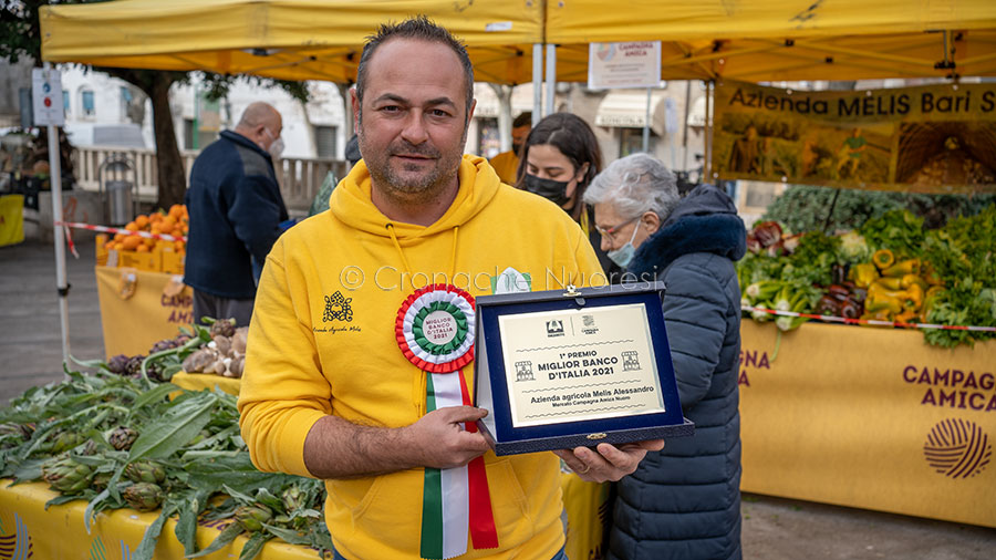 45 anni e originario di Barisardo, Alessandro Melis ha una laurea in psicologia e specializzazione come psicoterapeuta. La sua è una azienda di 35 ettari in cui coltiva circa 50 varietà di ortaggi e frutta che vende, freschi e di stagione, nei mercati di Campagna Amica nelle provincie di Nuoro, Nord Sardegna e Oristano. Questa mattina ha ricevuto dal presidente e dal direttore di Coldiretti Nuoro Ogliastra, Leonardo Salis e Alessandro Serra, al mercato di Campagna Amica di Nuoro, la targa di primo miglior banco italiano di Campagna Amica arrivato direttamente da Roma da Fondazione Campagna Amica.