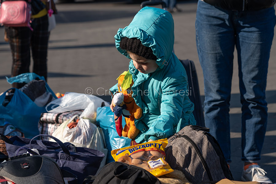 All’interno del campo il silenzio è rotto solo da sprazzi di vivacità di qualche bambino o dalla voce delle persone che si sono occupate di creare un legame con le famiglie ospitanti e controllano i documenti dei loro contatti prima di mettersi in cammino per un lungo viaggio in Europa dove troveranno finalmente ospitalità. Per il resto solo sguardi persi nel vuoto, anziani seduti accanto a poche valigie in attesa che qualche congiunto li raggiunga, giovani famiglie che consumano i pasti offerti negli stand approntati per l’occasione dai volontari o persone che vagano con un cartello in mano scritto in caratteri cirillici che attendono di incontrare la loro salvezza.