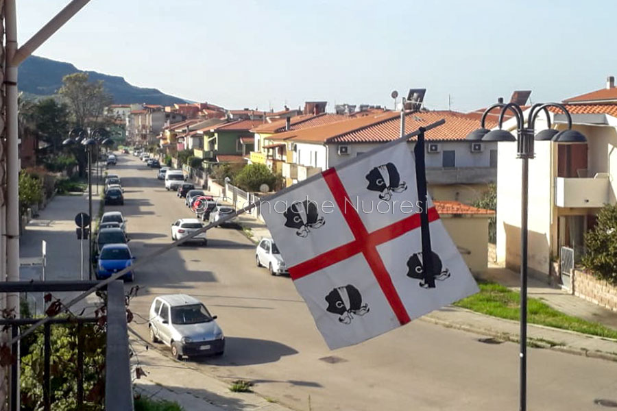 Bosa. Bandiera dei Quattro mori listata a lutto (foto P.L.Pala)