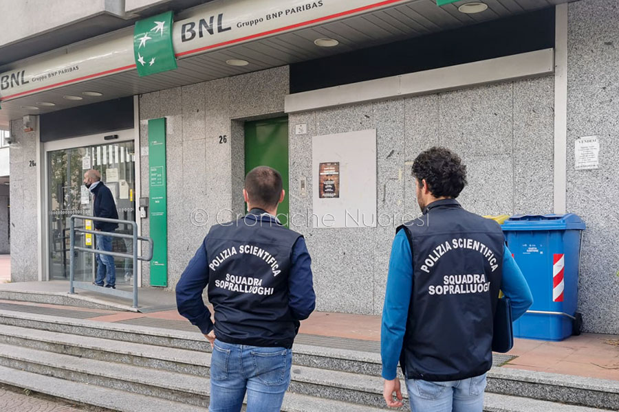 Il sopralluogo della Polizia scientifica alla BNL (foto S.Meloni)