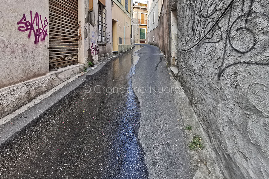 NUORO – Continua la saga della rete idrica colabrodo nuorese. Da oltre una settimana, una perdita d’acqua scorre indisturbata dall’angolo tra via Ferracciu e via Macchiavelli fino a piazza Crispi, a due passi dalle poste centrali, costringendo passanti e residenti a subirne il disagio.