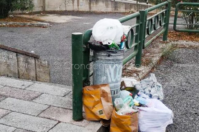 Inoltre mancano i bidoni per svolgere in modo consono la differenziata e l’unico cestino presente è