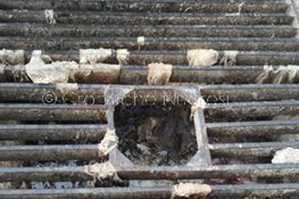 Un altro problema è dato dalle griglie di scarico uniche sia per le acque nere che per quelle bianche che ormai risultano essere completamente otturate.