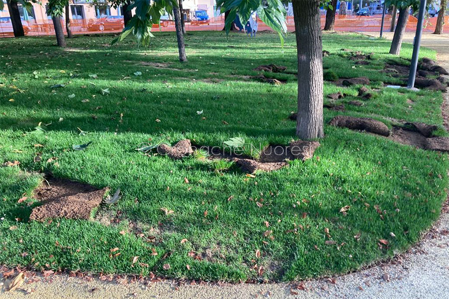 NUORO – Dopo i numerosi avvistamenti alle porte nella zona di Funtana Buddia, con video diventati virali sui social di interi branchi che di si aggirano indisturbati nei parcheggi dell’ospedale San Francesco, questa volta, i cinghiali hanno preso di mira i giardini di piazza Veneto, in fase di completamento dopo lavori di riqualificazione durati quasi un anno (APPROFONDISCI).